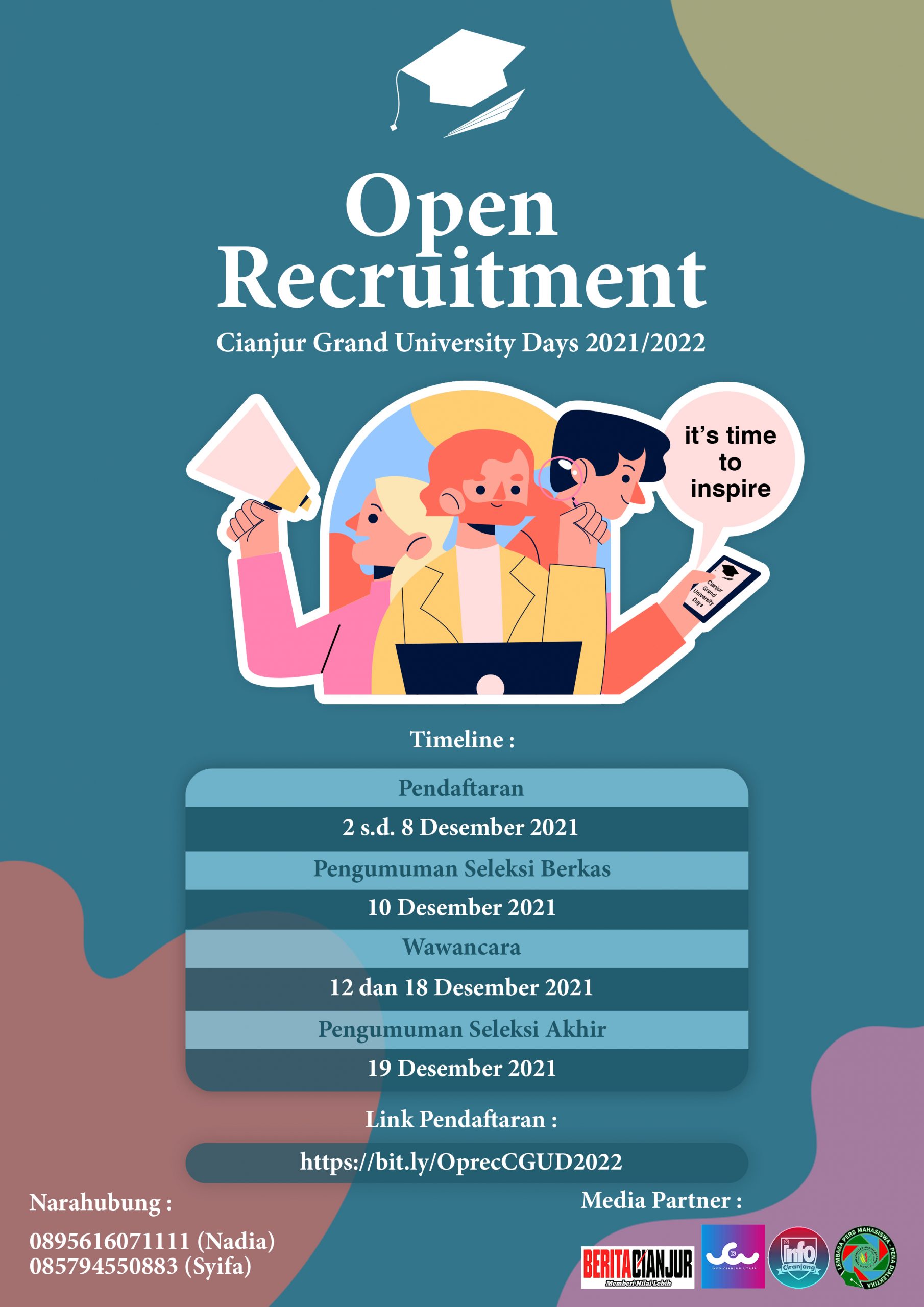 – Pengumuman seleksi akhir: 19 Desember 2021